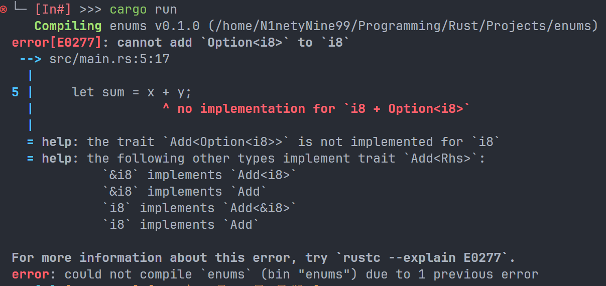可以注意到,在读取输入的过程中我们还有一句话,是 .expect("Fail to readline")。本小节我们将着重讨论这个语句。