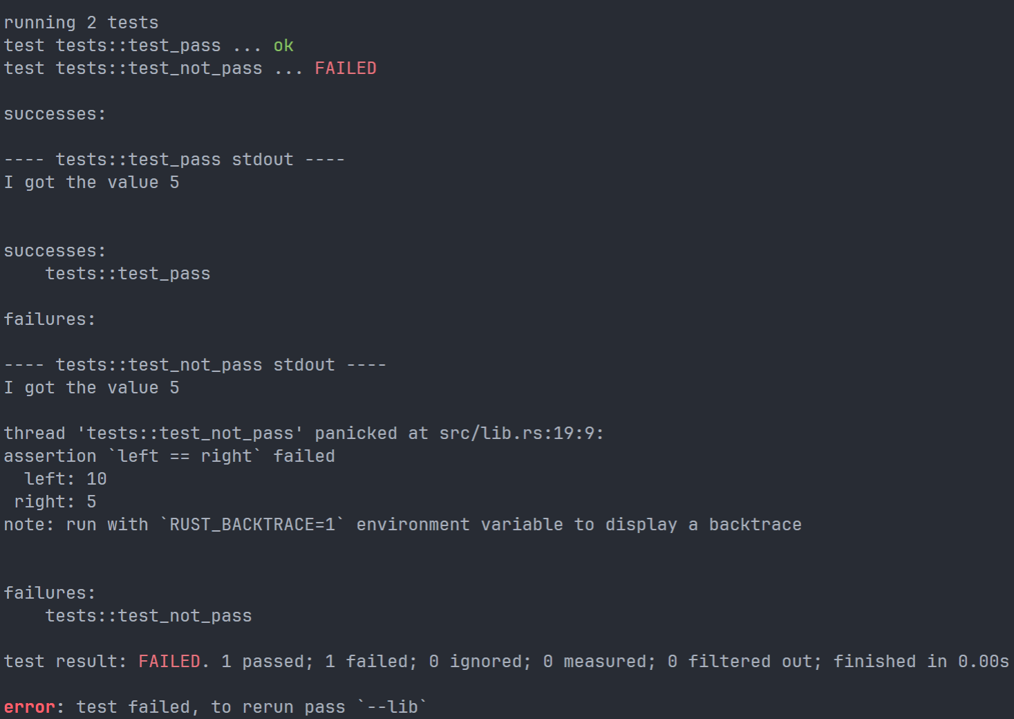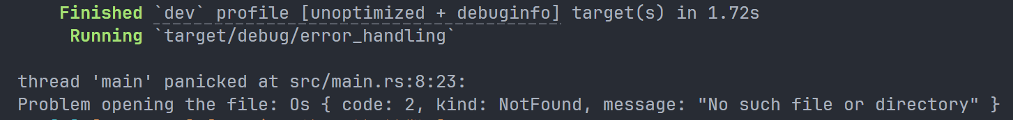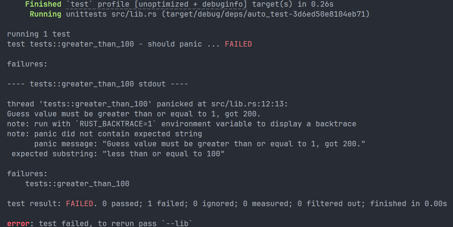 在这里,我们使用 match 分支来处理错误情况,上文提到过 Result 作为一个枚举值,有 OK 和 Err 两种情况。如果是 Ok 那么它会包含一个值,这个值就是我们预期想得到的一个类型转换后的值。如果是 Err,则 Err(_)。其中 _ 是一个 catch-all value,代表着不论这里存储的是什么,我们都期望与我们的这个分支匹配。