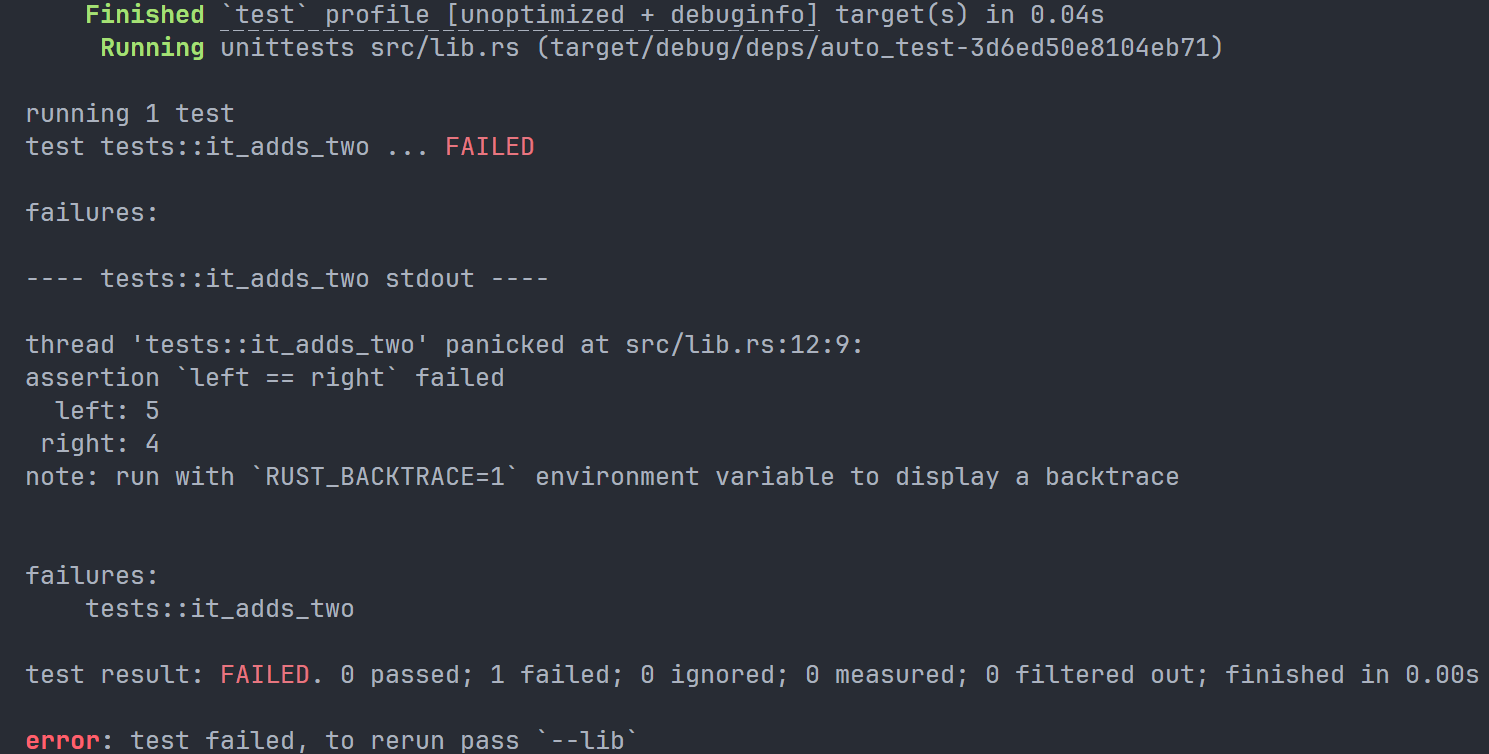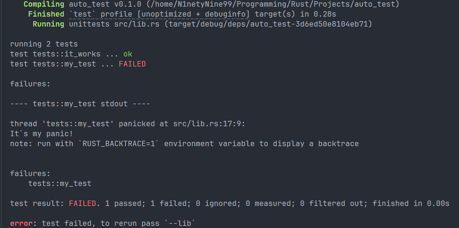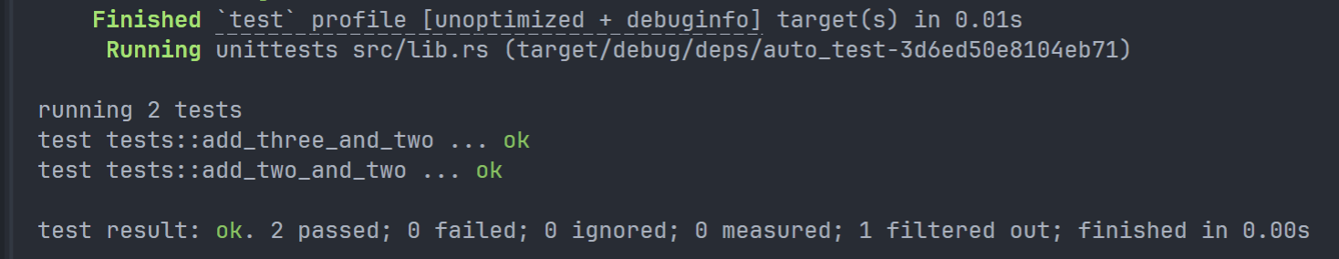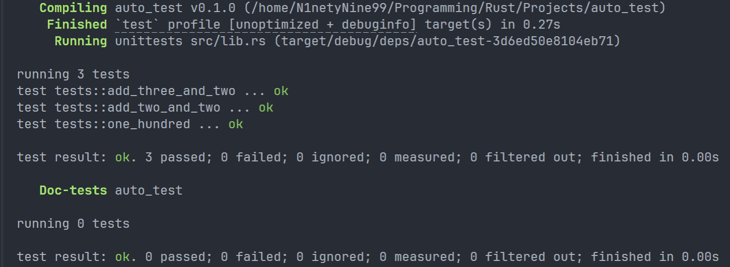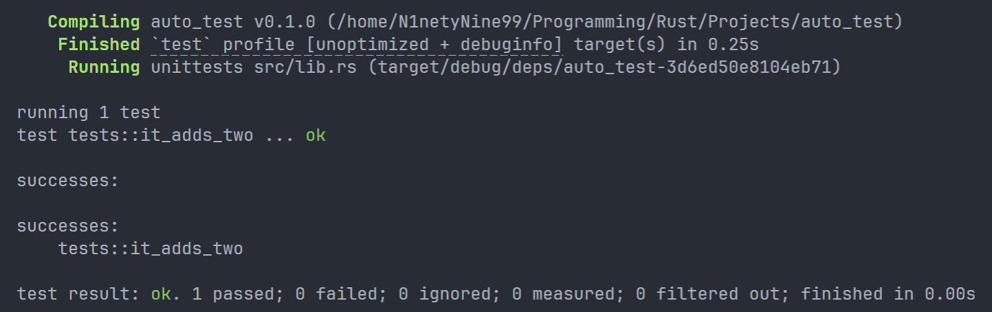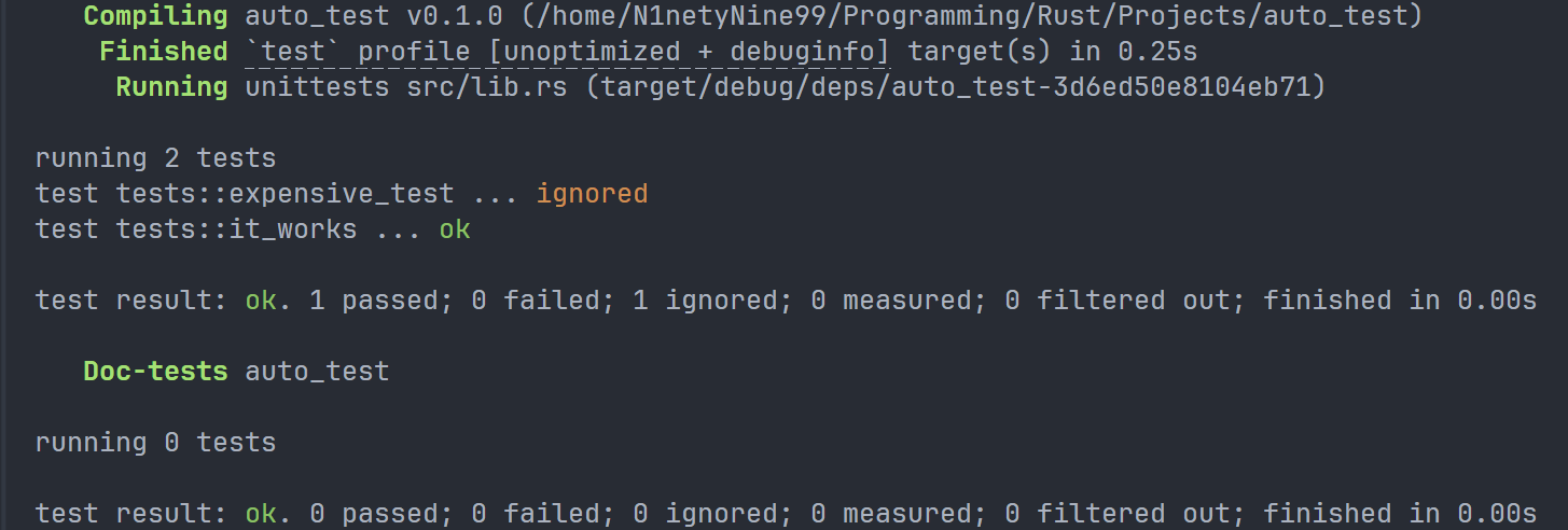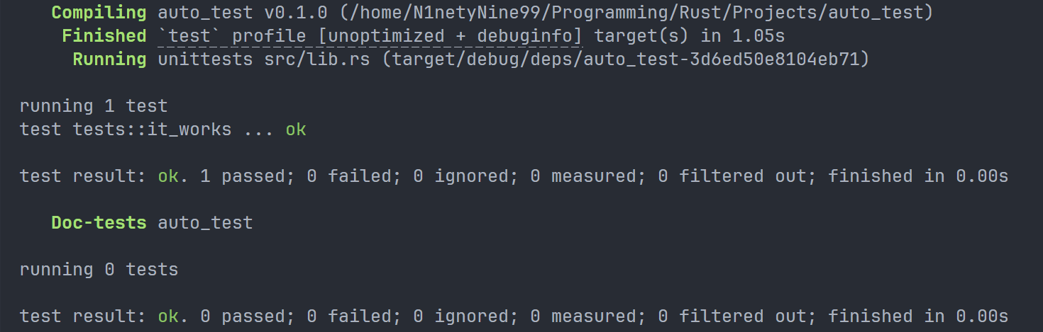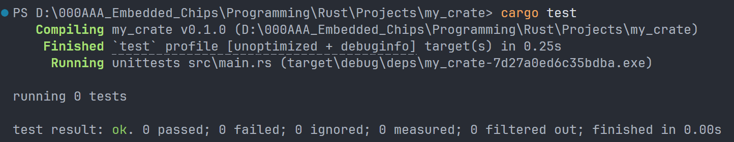 该指令用于创建一个完整的 Rust 项目。可加参数 " vsc ==" 来创建附加内容,默认创建了一个 git 存储库,但是我关掉了,具体关掉的方法如下: