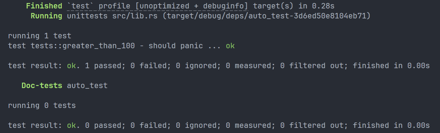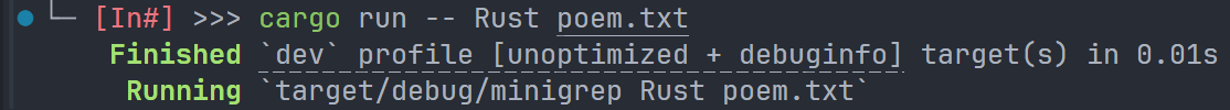 该指令用于 编译并生成一个可执行的二进制文件。注意与后文的 cargo check 区分。可以添加 --release 来让生成文件存放在 targer/release 中,而非默认的 target/debug 中。