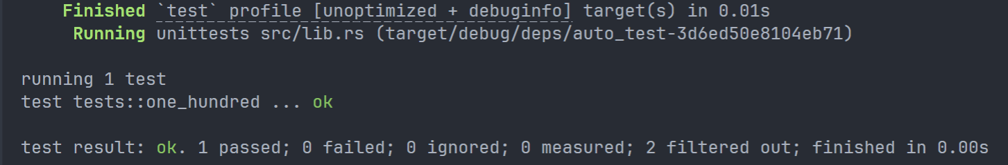 该指令用来编译当前的工程,但注意,cargo check 并不会 和 cargo build 一样生成一个可执行的二进制文件,所以耗时会大大快于后者,通常用于代码工程编写中途来 检测当前有无显著语法错误。