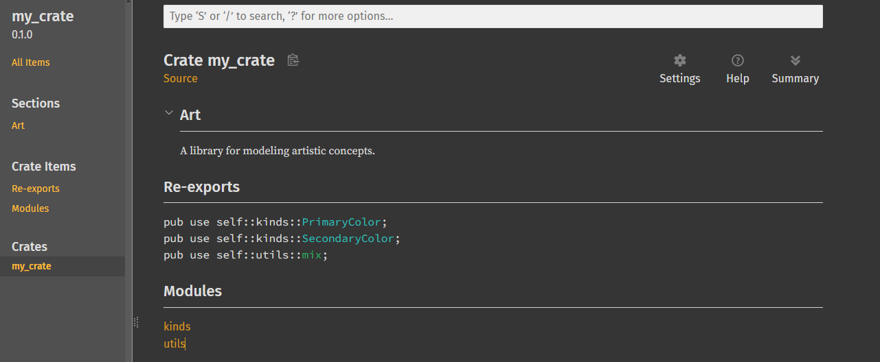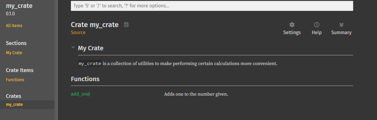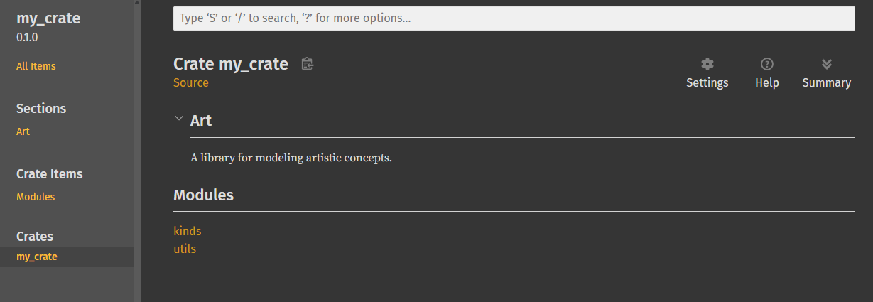 cargo doc --open命令会在本地构建所有依赖项的文档,并在浏览器中打开。例如,如果你想了解randcrate 的其他功能,只需运行cargo doc --open,然后在左侧边栏点击rand即可查看其文档。